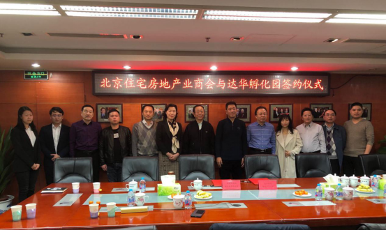 2019年3月14日,在達華集團總部舉行了北京住宅房地產業商會與達華孵化園簽約儀式,本次參加會議的主要人員有達華集團董事長杜永林、常務副總經理曹麗娟,總經理助理楊新民,涿鹿科技園孵化器有限公司副總經理盧博,北京住宅房地產業商戶會長黎乃超、項目部長劉紅亮、財務部長楊淑珍、副會長單位嗅聯網公司董事長許曉增、總經理鄧宇伯、理事單位北京海星晨電力有限公司營銷經理李春艷、天鵝鋁業經理張捷、中海國泰環保公司董事長吳永順等。