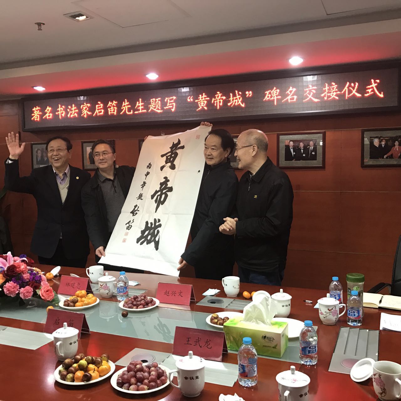 著名書法家啟迪先生題寫“黃帝城”碑名交接儀式在集團會議室圓滿舉行