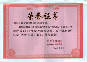 2006年度青海省建筑工程“江河源”杯獎(省級優質工程)